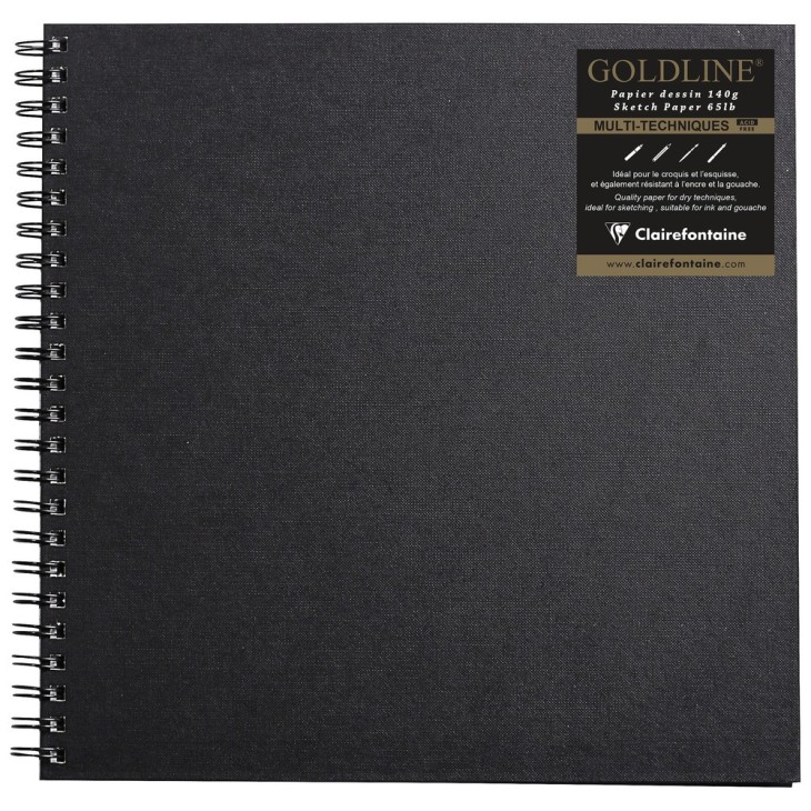 Album élégant à la couverture noire rigide. Papier blanc haut de gamme 140g. Véritable multi-technique, conçu pour les techniques sèches et résistant à l'aquarelle. Format carré. Carnet spiralé.