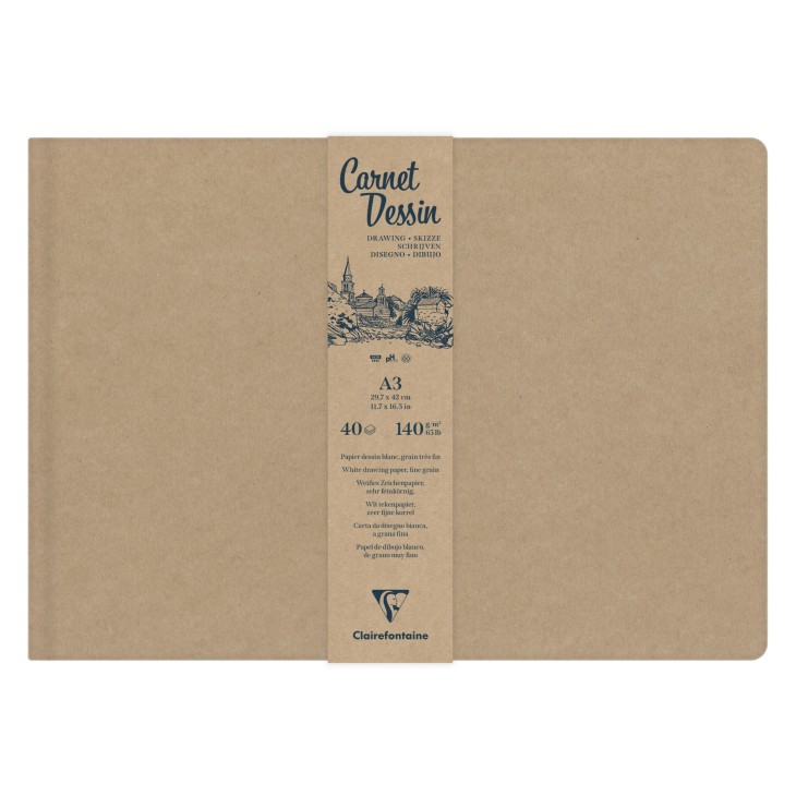 Carnet élégant à la couverture kraft brun rembordé rigide. Papier blanc haut de gamme 140g. Véritable multi-technique, conçu pour les techniques sèches et résistant à l'aquarelle. Orientation portrait. Carnet cousu sobre à couverture rigide. Intemporelle, il est idéal pour dessiner à l'encre de Chine, croquer, noter.
