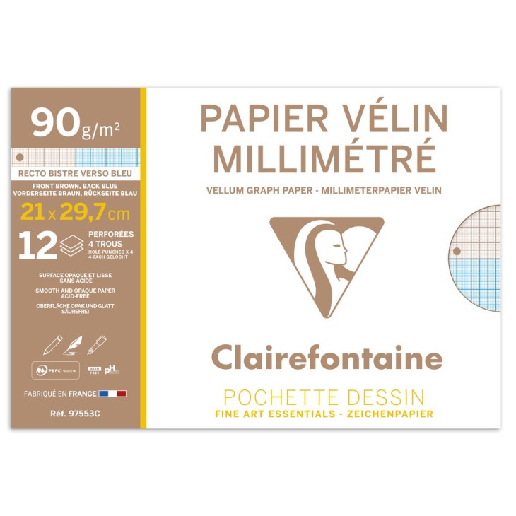 Papier millimétré lisse sans grain pour des tracés de qualité impression bleu sur le recto et bistre sur le verso. Très résistant, peut être gommé ou gratté sans risque de déchirure. Idéal pour le dessin au crayon graphite. Certifié PEFC pour une gestion responsable des forêts. Graduation facile à lire.