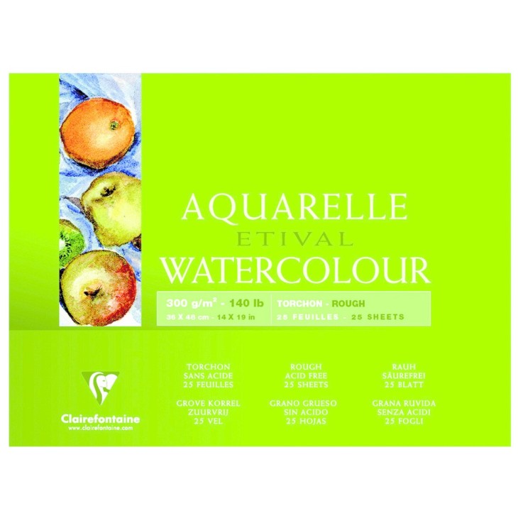 Bloc aquarelle encollé 4 côtés Etival 25 feuilles 300g