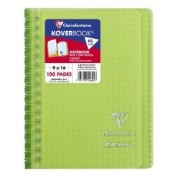 Koverbook l'original : carnet pratique et économique, véritable tout-en-un ! Reliure intégrale à couverture enveloppante protégeant les spirales tout en permettant une pleine ouverture du carnet à 360°. Fini les feuilles qui s'échappent ! Couverture solide et protectrice en polypropylène transparent avec deux rabats à pochette pour marquer les pages et ranger les documents utiles ! 6 couleurs assorties - Livraison aléatoire. Fabriqué en France. Papier Clairefontaine Vélin Velouté 90 g, pour une sensation de glisse unique. Certifié PEFC, pour la gestion durable des forêts.