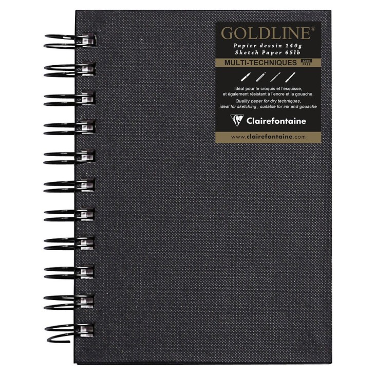 Album élégant à la couverture noire rigide. Papier blanc haut de gamme 140g. Véritable multi-technique, conçu pour les techniques sèches et résistant à l'aquarelle. Format carré. Carnet spiralé.