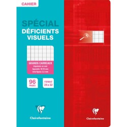 Cahier piqué spécial déficients visuels 24x32cm 96 pages grands carreaux noirs 2,5mm agrandis 10x10 Couleur aléatoire.