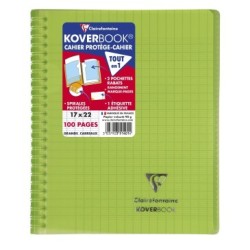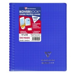Koverbook l'original : cahier & protège-cahier, tout-en-un ! Reliure intégrale à couverture enveloppante protégeant les spirales tout en permettant une pleine ouverture du cahier à 360°. Fini les feuilles qui s'échappent ! Couverture solide et protectrice en polypropylène transparent avec deux grands rabats à pochette pour marquer les pages et ranger les documents utiles ! Papier Clairefontaine Vélin Velouté 90 g, pour une sensation de glisse unique. Certifié PEFC, pour la gestion durable des forêts. Fabriqué en France. Fourni avec une étiquette adhésive pour personnaliser le cahier (nom, prénom, matière, classe...).