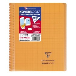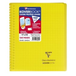 Koverbook l'original : cahier & protège-cahier, tout-en-un ! Reliure intégrale à couverture enveloppante protégeant les spirales tout en permettant une pleine ouverture du cahier à 360°. Fini les feuilles qui s'échappent ! Couverture solide et protectrice en polypropylène transparent avec deux grands rabats à pochette pour marquer les pages et ranger les documents utiles ! Papier Clairefontaine Vélin Velouté 90 g, pour une sensation de glisse unique. Certifié PEFC, pour la gestion durable des forêts. Fabriqué en France. Fourni avec une étiquette adhésive pour personnaliser le cahier (nom, prénom, matière, classe...).