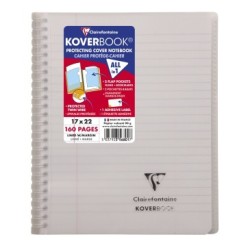 Koverbook l'original : cahier & protège-cahier, tout-en-un ! Reliure intégrale à couverture enveloppante protégeant les spirales tout en permettant une pleine ouverture du cahier à 360°. Fini les feuilles qui s'échappent ! Couverture solide et protectrice en polypropylène transparent avec deux grands rabats à pochette pour marquer les pages et ranger les documents utiles ! Papier Clairefontaine Vélin Velouté 90 g, pour une sensation de glisse unique. Certifié PEFC, pour la gestion durable des forêts. Fabriqué en France. Fourni avec une étiquette adhésive pour personnaliser le cahier (nom, prénom, matière, classe...).