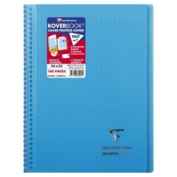 Koverbook l'original : cahier & protège-cahier, tout-en-un ! Reliure intégrale à couverture enveloppante protégeant les spirales tout en permettant une pleine ouverture du cahier à 360°. Fini les feuilles qui s'échappent ! Couverture solide et protectrice en polypropylène transparent avec deux grands rabats à pochette pour marquer les pages et ranger les documents utiles ! Papier Clairefontaine Vélin Velouté 90 g, pour une sensation de glisse unique. Certifié PEFC, pour la gestion durable des forêts. Fabriqué en France. Fourni avec une étiquette adhésive pour personnaliser le cahier (nom, prénom, matière, classe...).