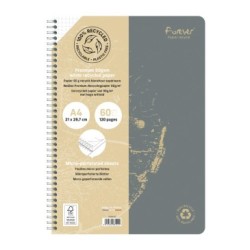 Une gamme multilingue unique sur le marché, en papier 100% recyclé à la blancheur naturelle, sans désencrage ni azurant optique. Il est accordé à notre qualité FOREVER parce qu'elle est fabriquée à partir de 100% de vieux papiers post-consumer, dans notre usine Everbal en France. Particularité éco-citoyenne : la production de cette machine à papier est réalisée grâce à des chaudières biomasse à énergie renouvelable, sans émissions de CO2 d'origine fossile ! Reliure intégrale permettant une pleine ouverture, idéal pour l'utilisation recto/verso des feuilles ! Couverture carte vernie recyclée. Fabriqué en France. Papier Surfin 100% recyclé 70 g.