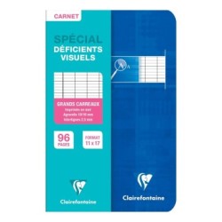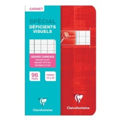Dès 1950, Clairefontaine entreprend de proposer des cahiers tranchant par la qualité de leur papier, la gaieté et la solidité de leur couverture, sur les piètres articles de l'époque. Clairefontaine révolutionnera alors l'usage des cahiers et appuiera l'engagement de l'entreprise dans une quête permanente d'amélioration de la qualité. Désormais célèbre pour ses cahiers haut de gamme, Clairefontaine fabrique ses produits à base de papier uniquement avec des pâtes à papier provenant à 100% de forêts certifiées pour leur gestion environnementale. Grâce à des produits parfaitement en phase avec les besoins de tout à chacun, Clairefontaine fait partie intégrante de notre quotidien. Lignage spécial déficients visuels : carreaux agrandis, imprimés en noir avec les lignes primaires et la marge plus marquées que les lignes secondaires. Couverture carte pelliculée brillante et imperméable. Fabriqué en France. Papier Clairefontaine Vélin Velouté 90g, pour une sensation de glisse unique. Certifié PEFC, pour la gestion durable des forêts.