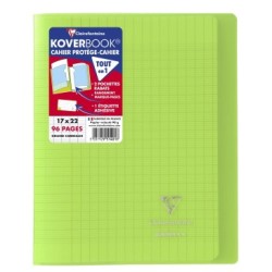 Koverbook l'original : cahier & protège-cahier, tout-en-un ! Couverture solide et protectrice en polypropylène transparent avec deux grands rabats à pochette pour marquer les pages et ranger les documents utiles ! Fourni avec une étiquette adhésive pour personnaliser le cahier (nom, prénom, matière, classe...). Fabriqué en France. Papier Clairefontaine Vélin Velouté 90 g, pour une sensation de glisse unique. Certifié PEFC, pour la gestion durable des forêts.