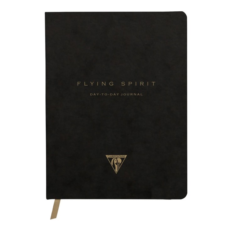 Flying Spirit, Black, DaytoDay journal 19x25 cm, 192 pages, dot, gusseted pocket on the spine, bookmark, elastic closure, ass. Flying Spirit is a collection dedicated to inspiration and creativity. A retro look enhanced by a series of poetic illustrations elegantly printed on covers with a raw look. Noble materials combined with careful finishes that bring an authentic touch. Warm and precious, leather naturally completes this collection. Lambskin with a smooth appearance. Glazed or aged skin with a velvety feel. Flying Spirit leather goods offer multiple facets and ensure you a look that is both sober and assertive. Discover the art of organization with the Day to Day Journal 19x25 cm. Featuring a table of contents, a dot grid, numbered pages, a gusseted pocket and a bookmark, this journal offers a complete solution for planning, creating and organizing. It's the perfect companion for expressing your creativity while staying organized. 5 assorted designs. The quality and softness of Clairefontaine 90g ivory velvety vellum paper, PEFC-certified and manufactured in the Vosges region by Clairefontaine.